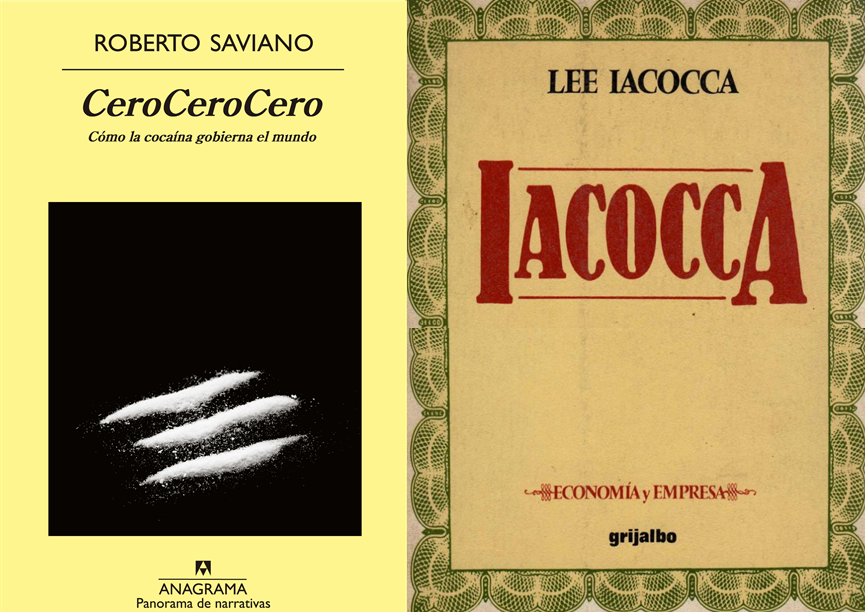 A Cero Cero Cero lo leí con detalle y paciencia solo por masoquismo, por aprender lo que no aprendí en mis lecturas de los primeros años de universidad, ya fuera por un desinterés de mi parte del que ahora me arrepiento o por lo que fuera, pero no sé si lo volvería a leer porque quedé un poco saturada de tanta droga, llena de pesadillas y tristeza. IACOCCA (1984) en cambio, el libro delgado y verde que tomé de mi biblioteca como tabla de salvación, sí lo volvería a leer aunque ya con ojos diferentes. Y no por salvarme de nada sino por recordar la vida de Lido Anthony Iacocca, Ingeniero Industrial, creador del Ford Mustang y quien años más tarde, ya fuera de la Ford, salvó a la Chrysler de la quiebra con la minivan.
