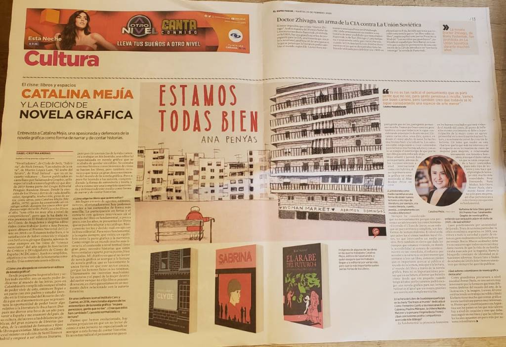 Ventiladores Clyde de Seth, Sabrina de Nick Drnaso, Las edades de la rata de Martín López Lam, El árabe del futuro de Riad Sattouf —que va en su cuarto volumen—, fueron publicados en castellano por Salamandra Graphic, sello especializado en novela gráfica y que desde 2019 forma parte del Grupo Editorial Penguin Random House. Desde la elección de los libros y detrás de cada detalle: color, tipografía, traducción, giras de autor, entre otros, está Catalina Mejía (Medellín, 1979), quien ha construido un catálogo sólido durante los cinco años que lleva a cargo del sello. Publica ocho libros al año, “una cifra no muy alta a nivel de competidores”, pero que le ha dado varios premios en El Festival Internacional del Cómic de Angulema y alegrías editoriales como trabajar junto a Ana Penyas, quien obtuvo el Premio Nacional del Cómic en 2018 con Estamos todas bien, o la satisfacción de haber conocido y viajado con Seth en su gira por España, además de estar siempre en las listas de “cómics esenciales” del año según la Asociación de Críticos y Divulgadores de Cómic de España (ACDCómic). Sueños cumplidos, objetivos y su visión de la historieta como medio. Una entrevista a esta editora.