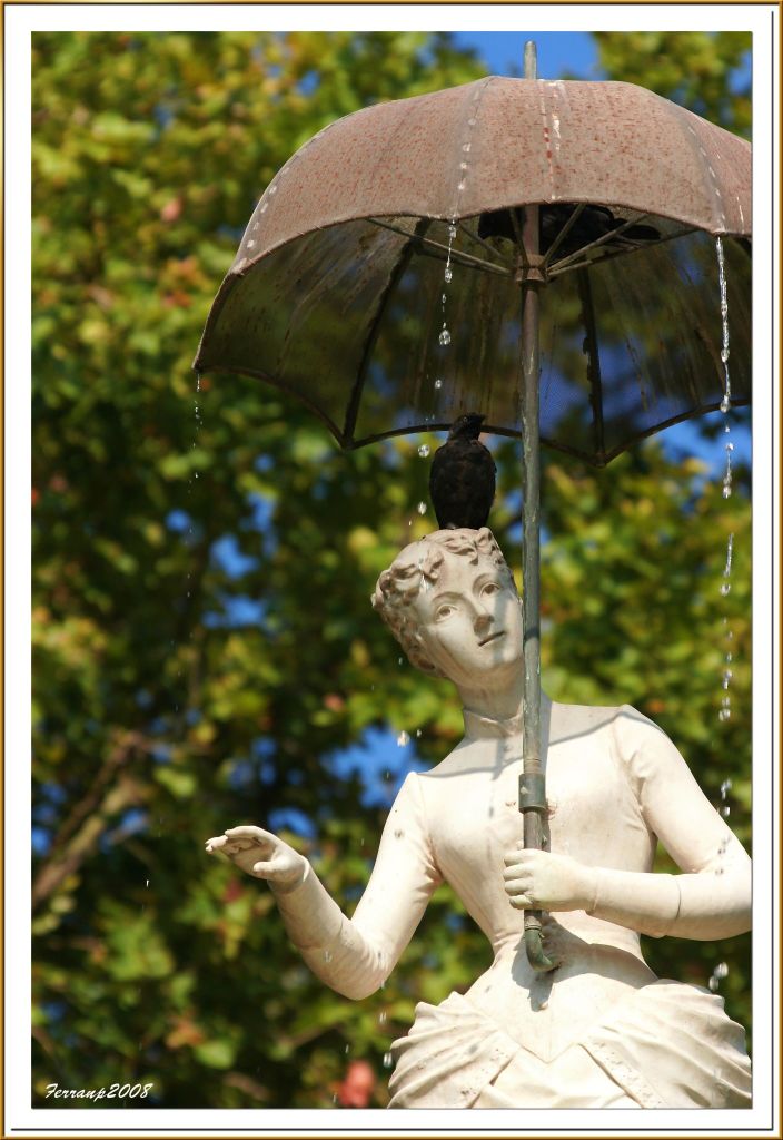 Quizás nadie pensaría en cortar esa mano que intuye la lluvia, ni en quitarle la sombrilla que la cubre del sol y del agua, aunque nunca de palomas y gaviotas. La Dama del paraguas de Barcelona es una estatua en mármol, saltarina quizás feliz y posiblemente mágica, ubicada sobre una fuente; la dama fue hecha por el escultor Joan Roig i Solé en 1884. Para verla se debe pagar la entrada al zoológico, y tal vez haber estado allí antes para no fijarse solo en los animales cautivos y pavorreales libres sino también en todas las demás estatuas del lugar: hay un perro hambriento, un delfín que salta, un león a la defensiva; también un San Francisco de Asís. Si alguna vez la Dama del paraguas fue polémica se debió a su vestido pues pasaría pronto de moda, también se calificó como banal si se comparaba con las demás estatuas, mucho más ostentosas, del evento para el que fue creada: la Exposición Universal de Barcelona en 1888. ¿Quién pensaría en hacerle daño? En el cuento, La garra de la estatua, del escritor mexicano Eduardo Ruiz Sosa, una mano es una promesa: “La mano se esconde lejos del cuerpo y la estatua, que desea volver a estar completa, cumple el deseo para recuperar la mano, es entonces cuando uno se la devuelve”.